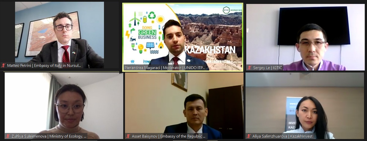 “Doing Green Business in Kazakhstan” è il secondo episodio della serie di webinar organizzata da UNIDO ITPO Italy nell’ambito del progetto “Fostering international partnerships between companies and/or institutions operating in the energy and environment sectors” finanziato dal Ministero Italiano dell’Ambiente e della Tutela del Territorio e del Mare.