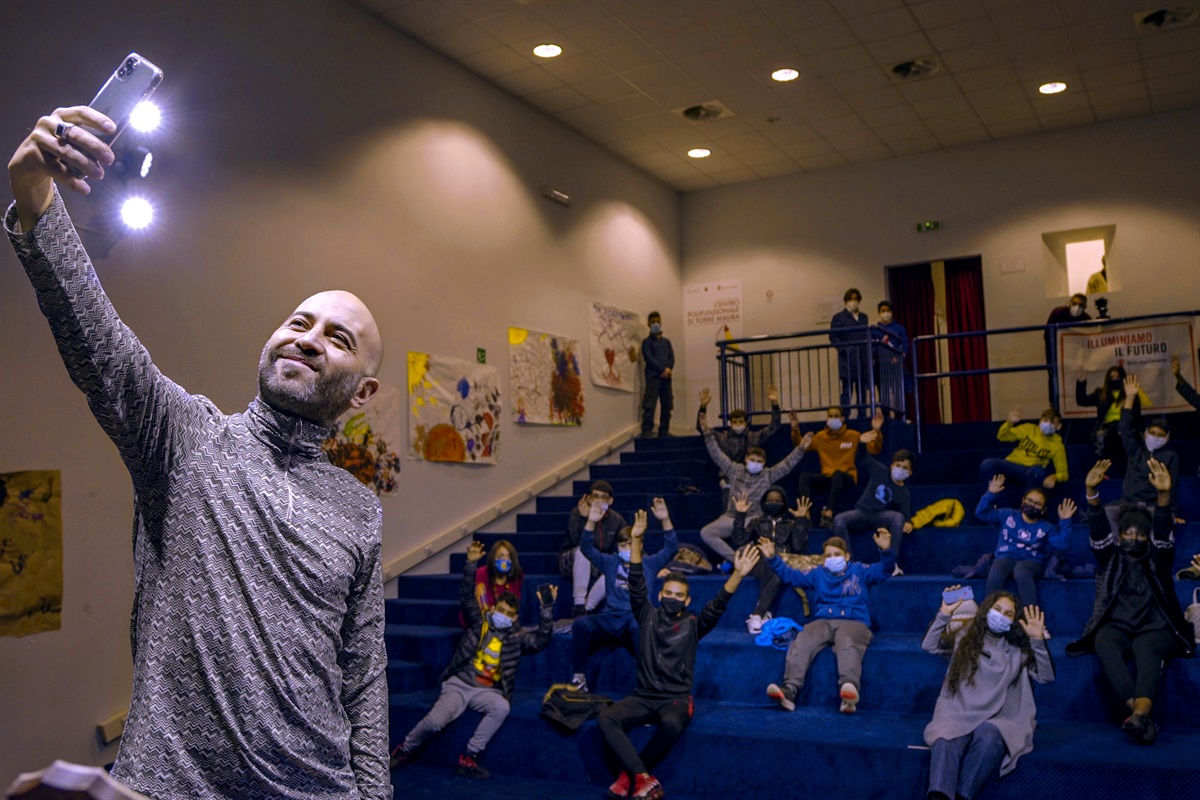 Roma, 15 dicembre 2020 - Una giornata speciale per i bambini e i ragazzi di uno dei Punti Luce di Roma di Save the Children: Giuliano Sangiorgi dei negramaro ha visitato il centro che offre supporto ai bambini e alle famiglie del quartiere – dal sostegno allo studio ad attività sportive ed educative - per consegnare alcuni prodotti donati da Amazon.it e per incontrare i ragazzi, a cui ha regalato anche un’esibizione acustica live.