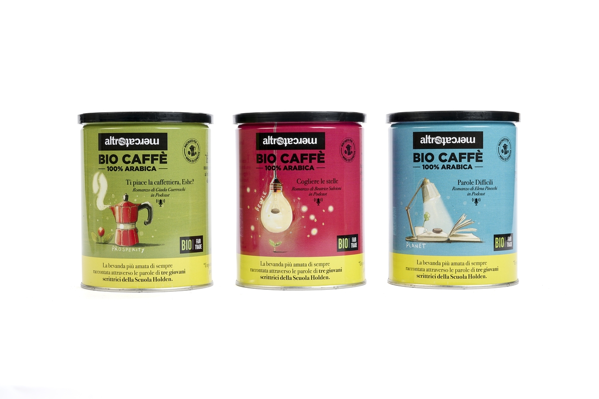 Ogni lattina di biocaffè Altromercato ha un QR code integrato nella grafica tramite il quale scaricare un racconto inedito in formato pdf che tratterà di sostenibilità ambientale, riduzione delle diseguaglianze di genere, equa distribuzione delle ricchezze.