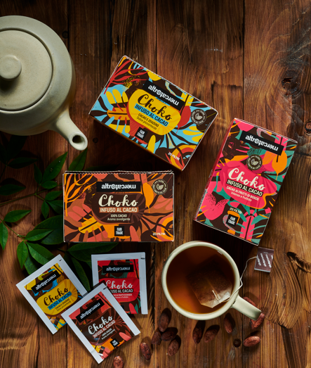 La linea choko è la prima al cacao equosolidale e da filiera diretta, realizzata seguendo i principi dell’economia circolare: abbiamo dato nuova vita alla parte esterna delle fave di cacao tostate, che normalmente non vengono impiegate durante il processo di lavorazione del cioccolato, trasformandole in un delizioso infuso. 100% Cacao dal sapore avvolgente, con zenzero dolce e leggermente piccante, o ai frutti di bosco dall’aroma fruttato. Questi infusi restituiscono in tazza il vero sapore del cacao etico. Anche in questo caso il packaging è in carta FSC riciclabile e senza plastica