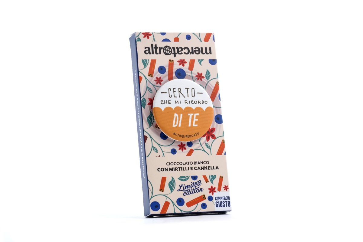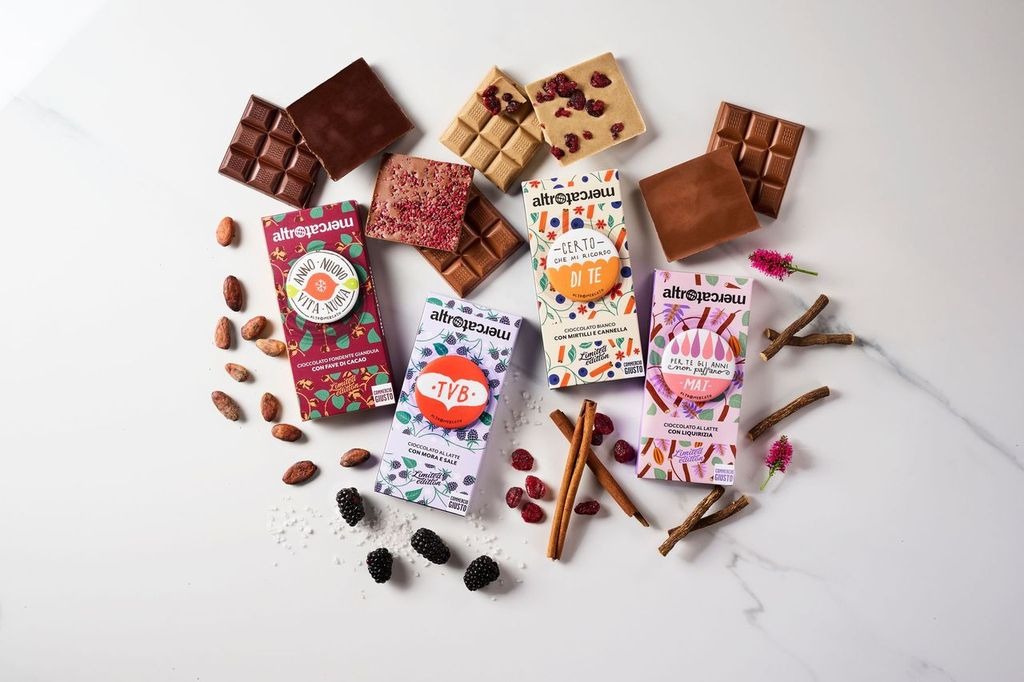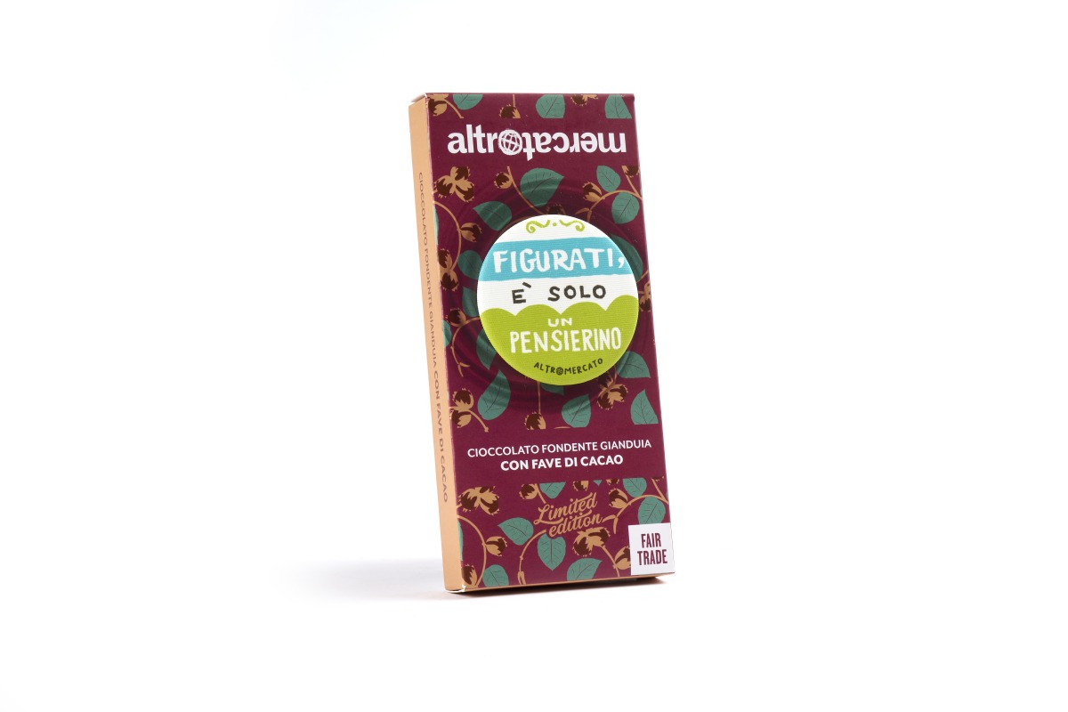 *Sullo shop online sono presenti combinazioni predefinite, nelle botteghe Altromercato è possibile creare la propria combinazione con tanti altri messaggi da abbinare alle tavolette di cioccolato.