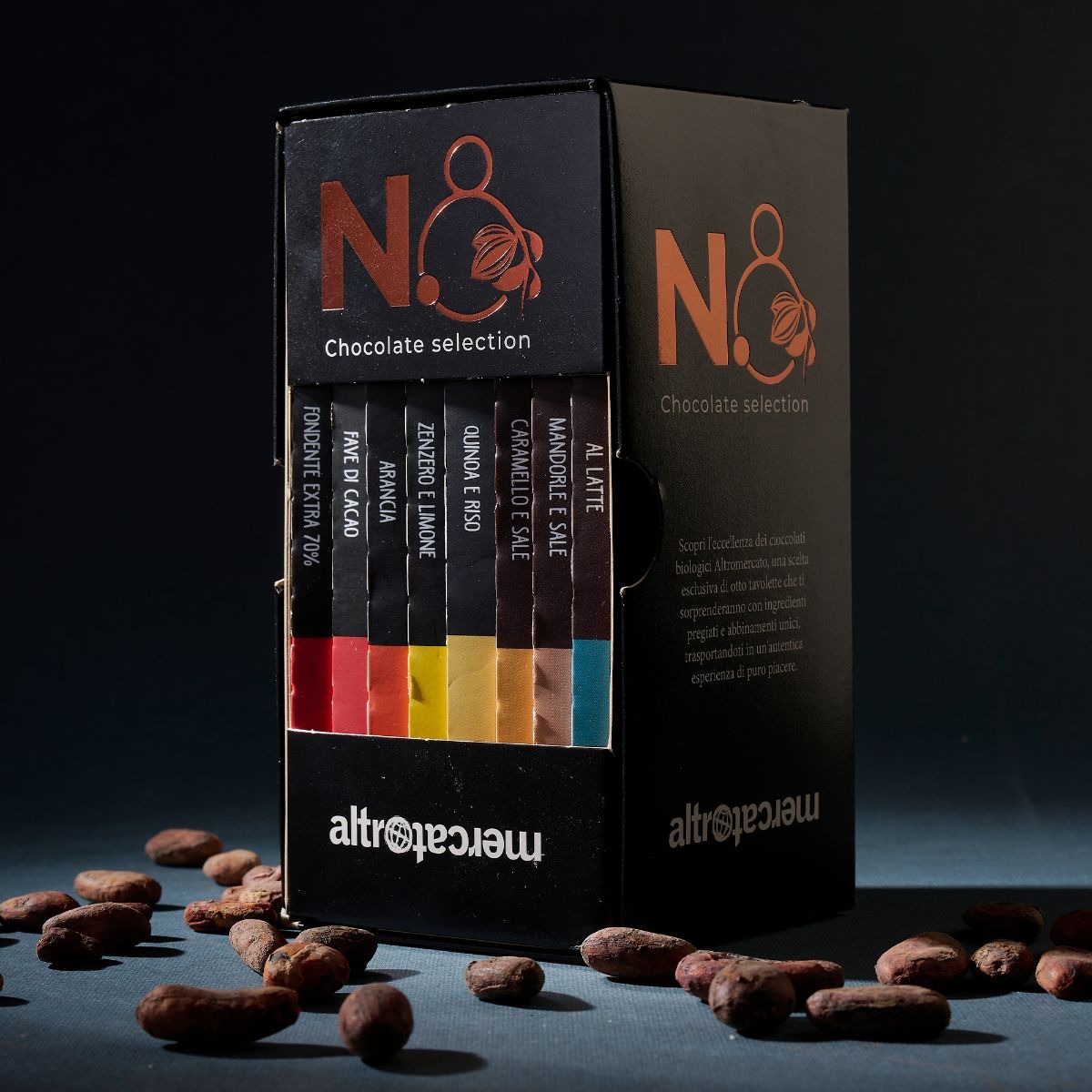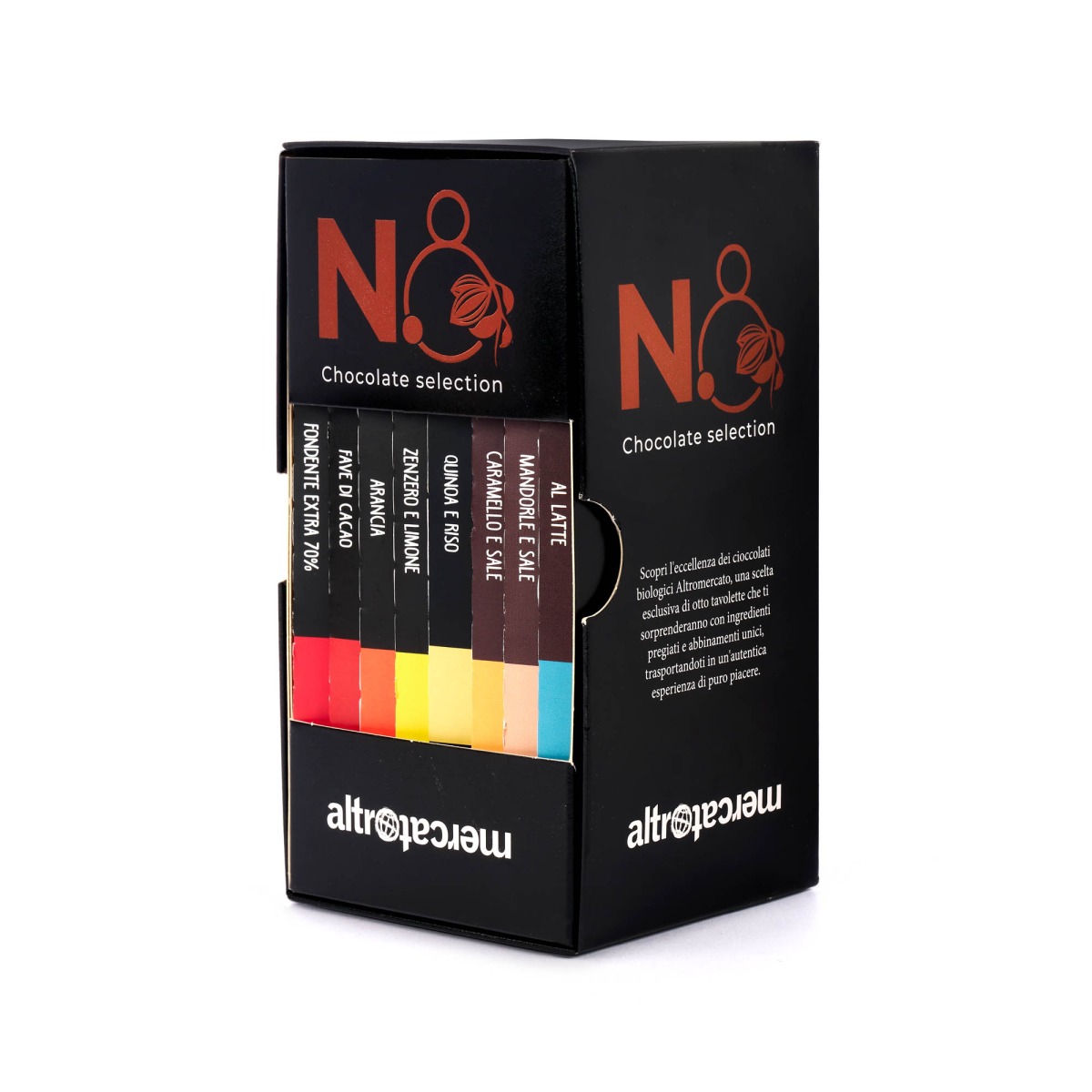 Una selezione dei migliori cioccolati biologici Altromercato, otto tavolette con ingredienti pregiati e accostamenti inediti per esplorare il mondo del cioccolato. Il regalo perfetto per gli amanti del cioccolato gourmet: dai fondenti extra alle tavolette al latte, in purezza o con deliziose inclusioni.